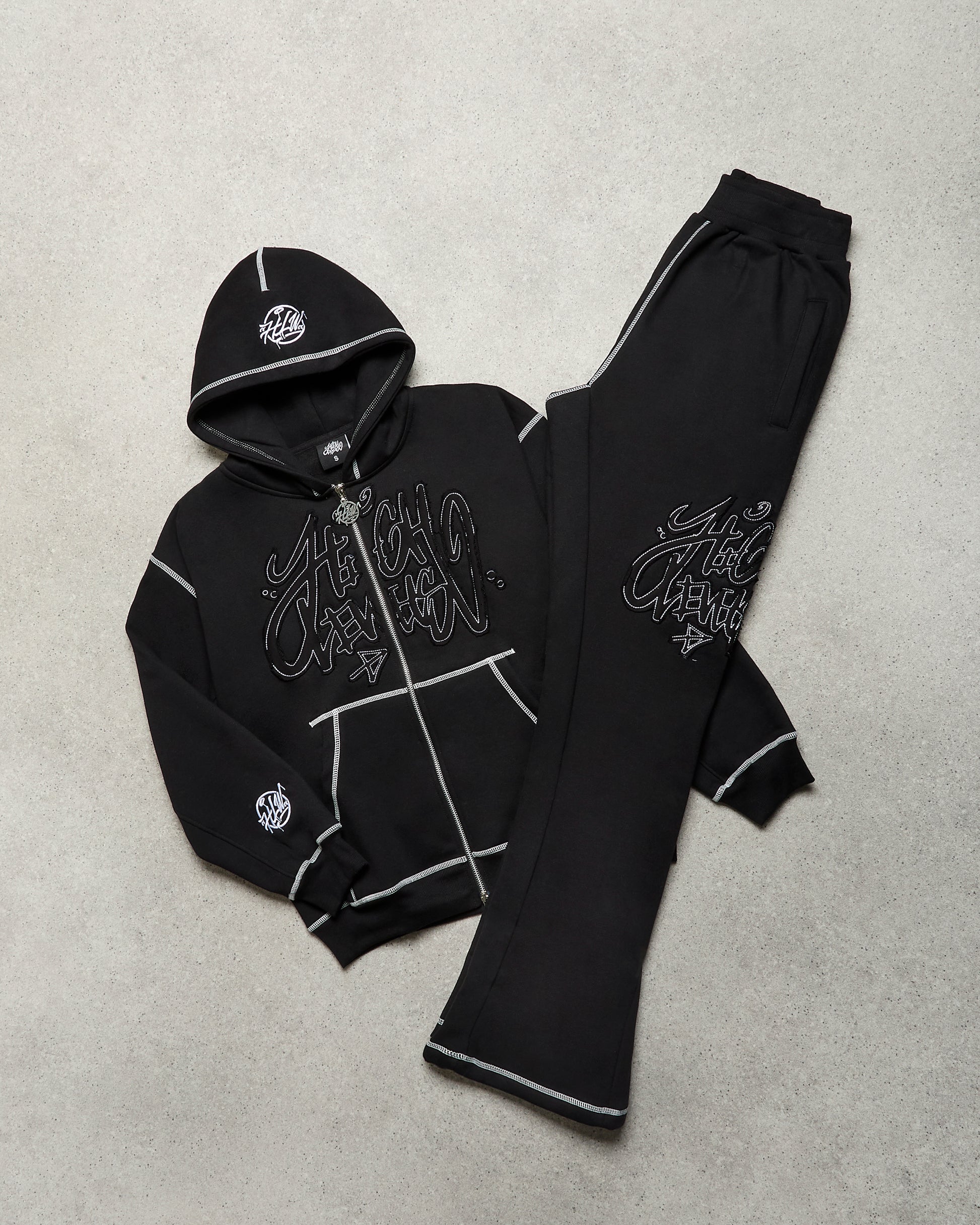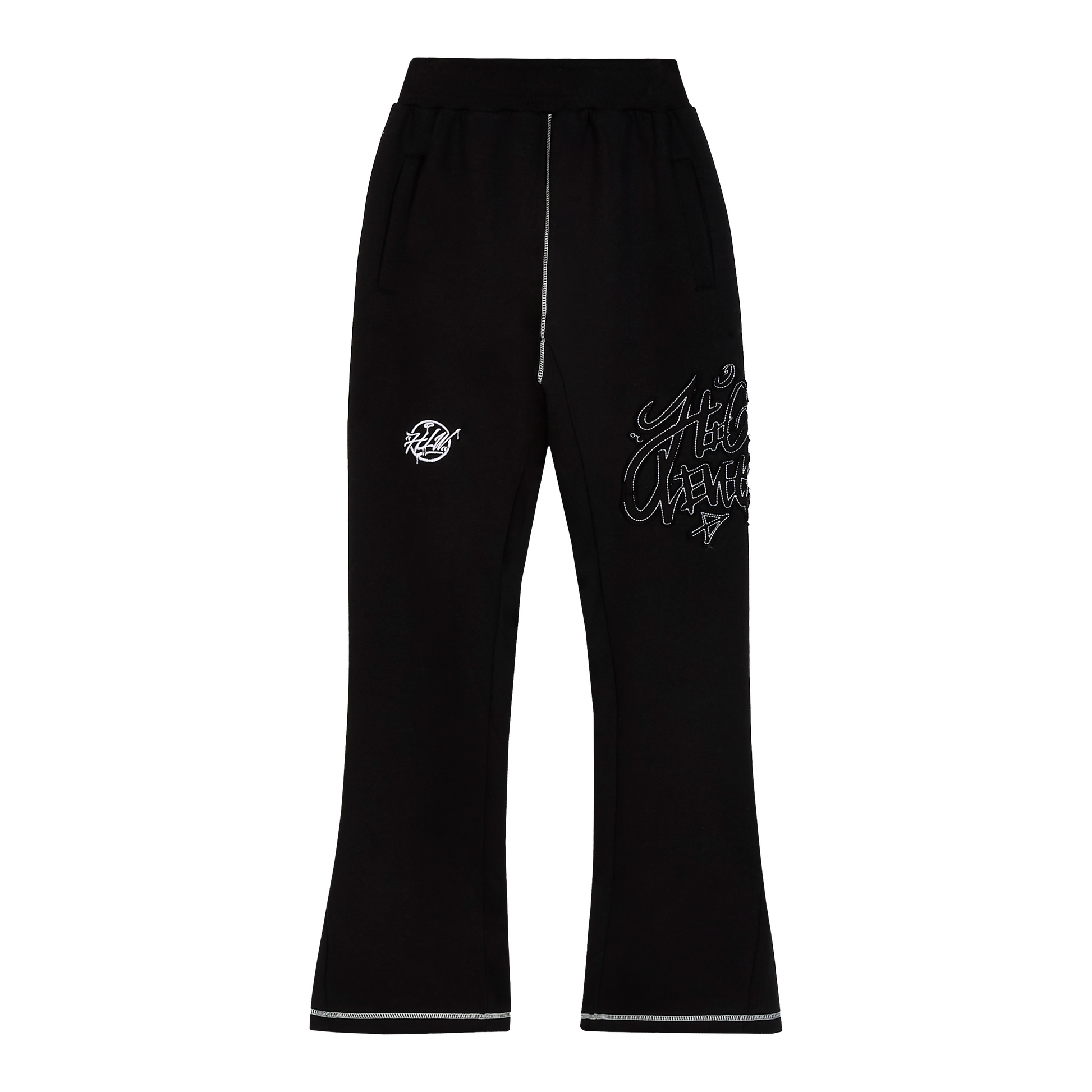 Flared joggers with distressed 3D embroidery and contrast stitching, cut for a relaxed, comfortable fit.
